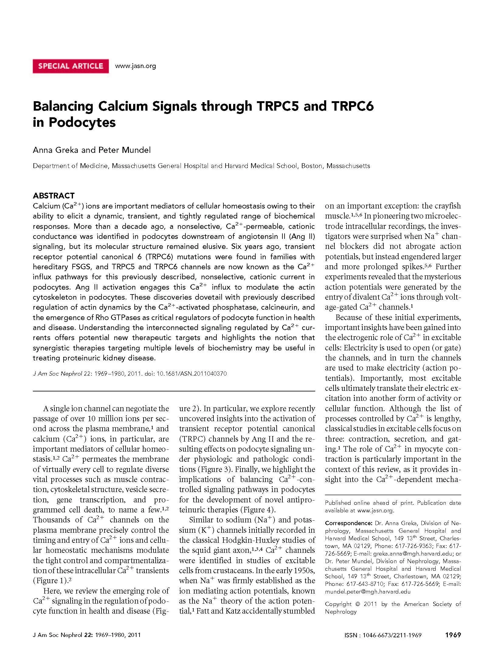 Greka A, Mundel P. Balancing calcium signals through TRPC5 and TRPC6 in podocytes. J Am Soc Nephrol. 2011 Nov;22(11):1969-80. doi: 10.1681/ASN.2011040370. Epub 2011 Oct 6. PMID: 21980113; PMCID: PMC3231779.