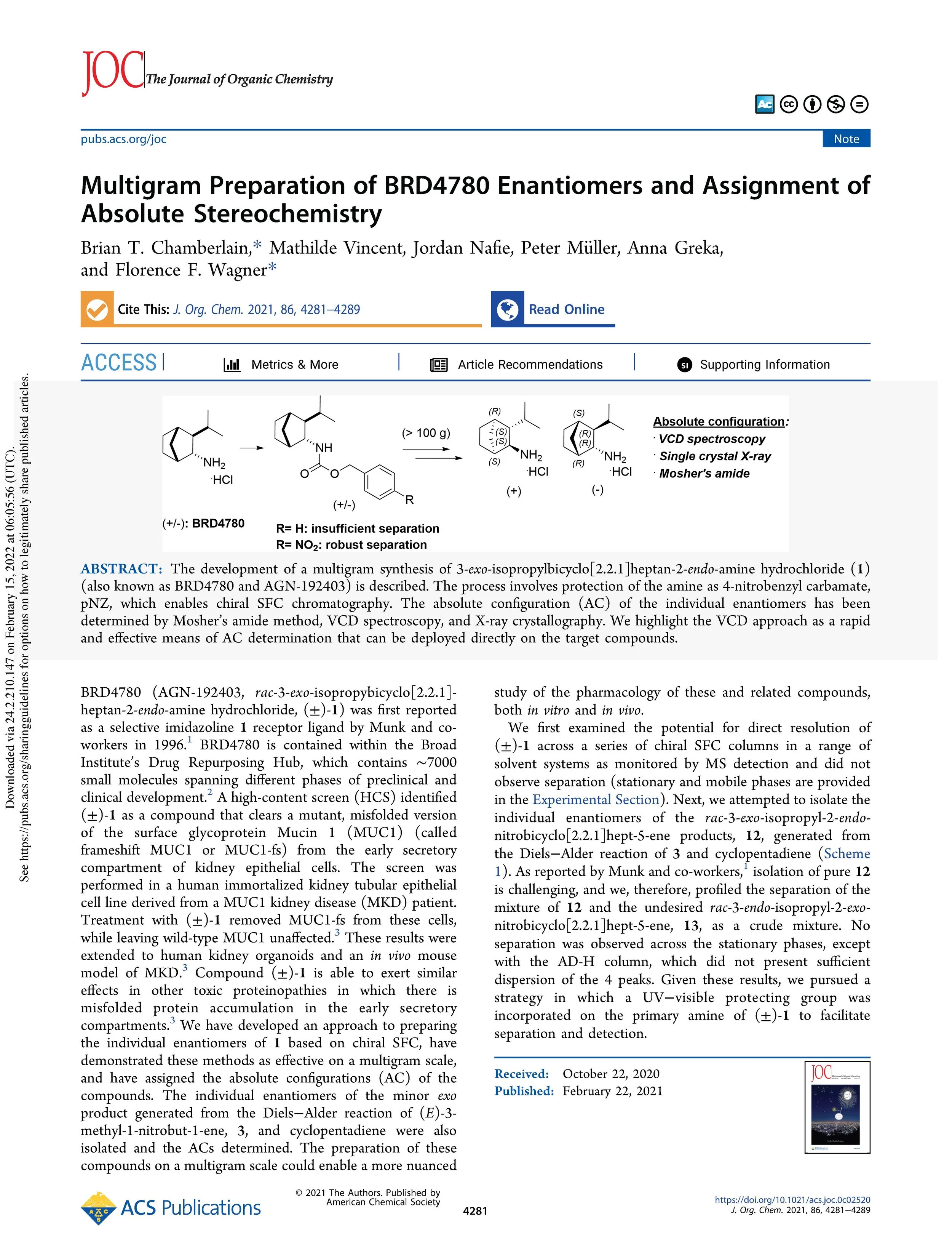 Chamberlain BT, Vincent M, Nafie J, Müller P, Greka A, Wagner FF. Multigram Preparation of BRD4780 Enantiomers and Assignment of Absolute Stereochemistry. J Org Chem. 2021 Mar 5;86(5):4281-4289. doi: 10.1021/acs.joc.0c02520. Epub 2021 Feb 22. PMID: 33618515.